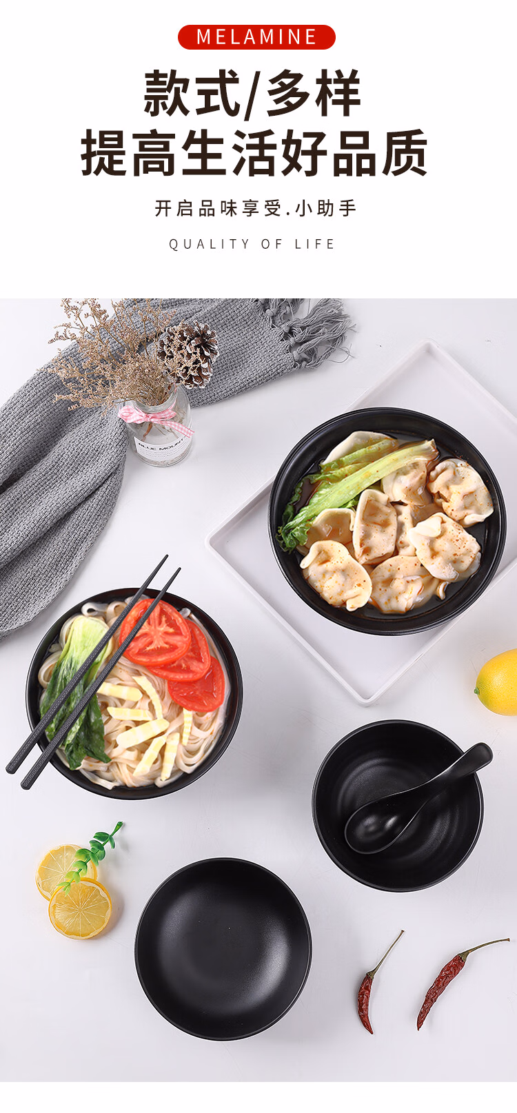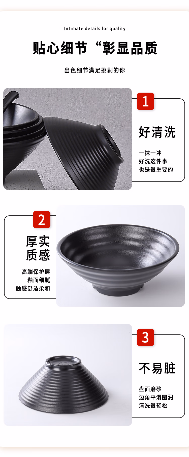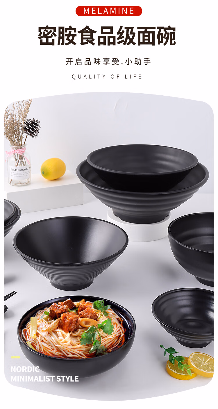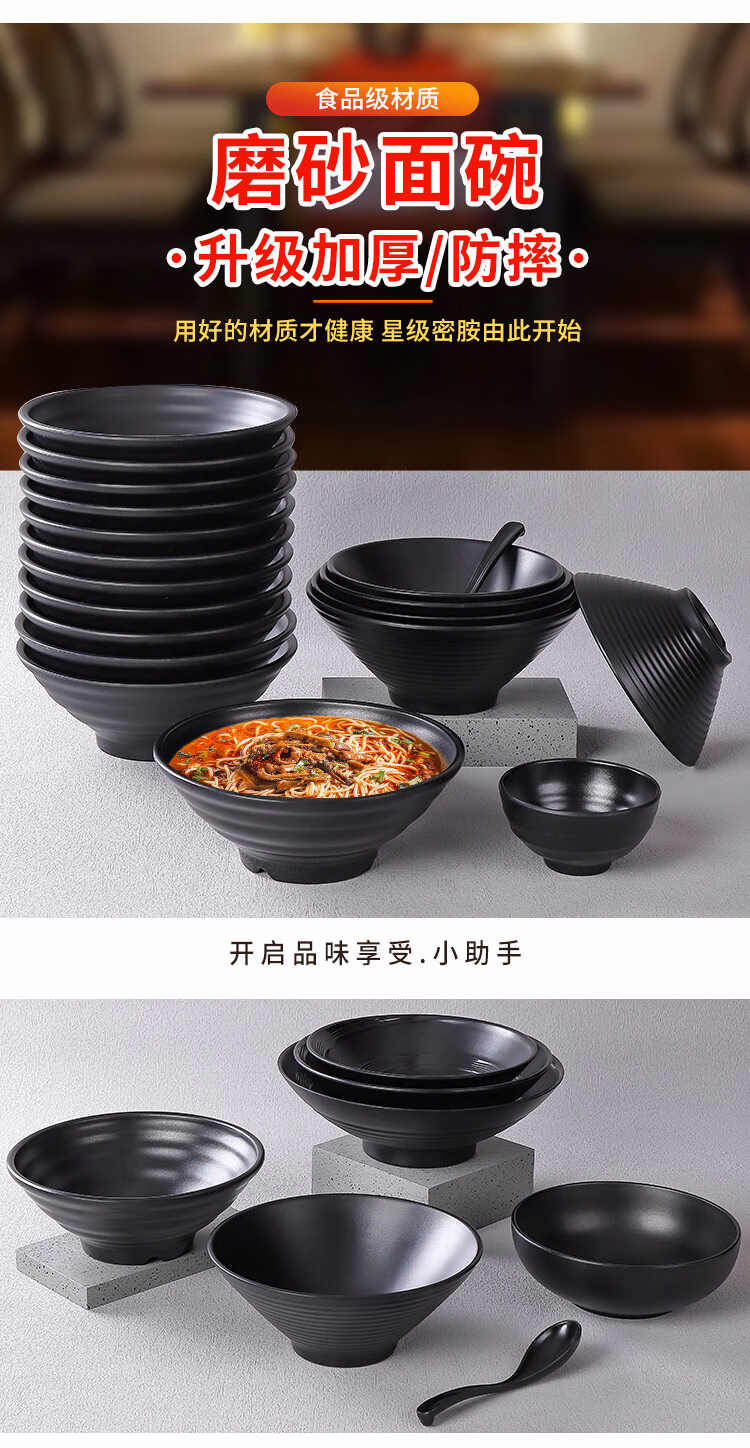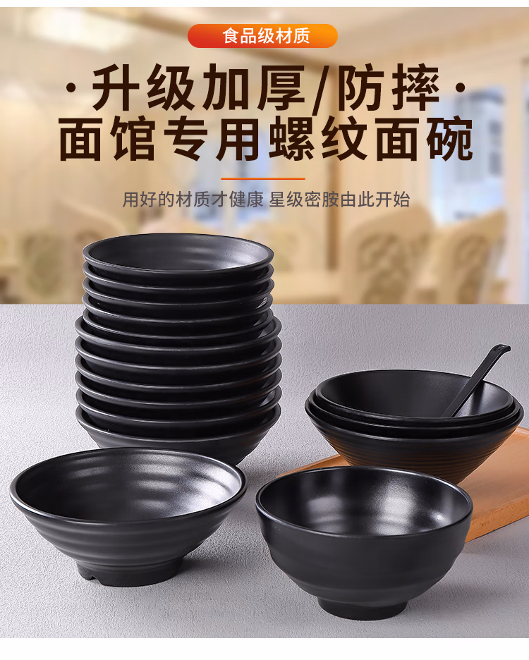黑色大碗汤碗面碗塑料碗仿瓷餐具碗